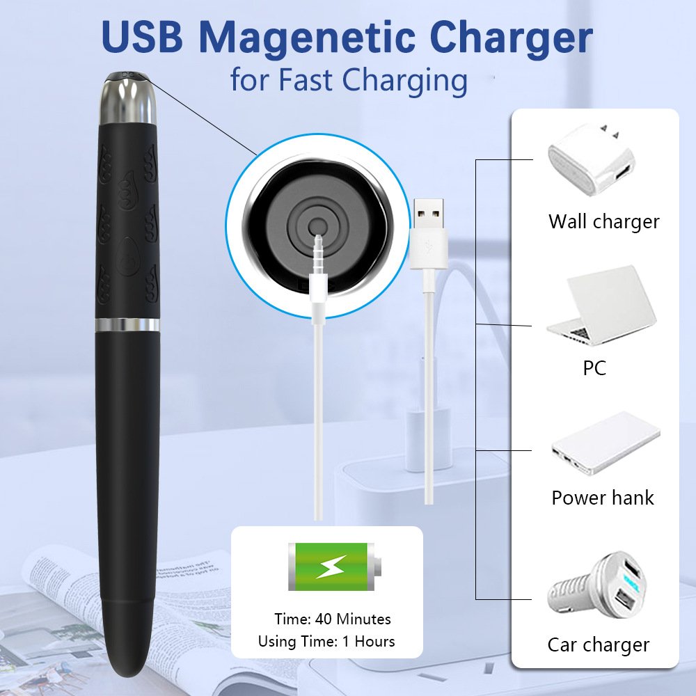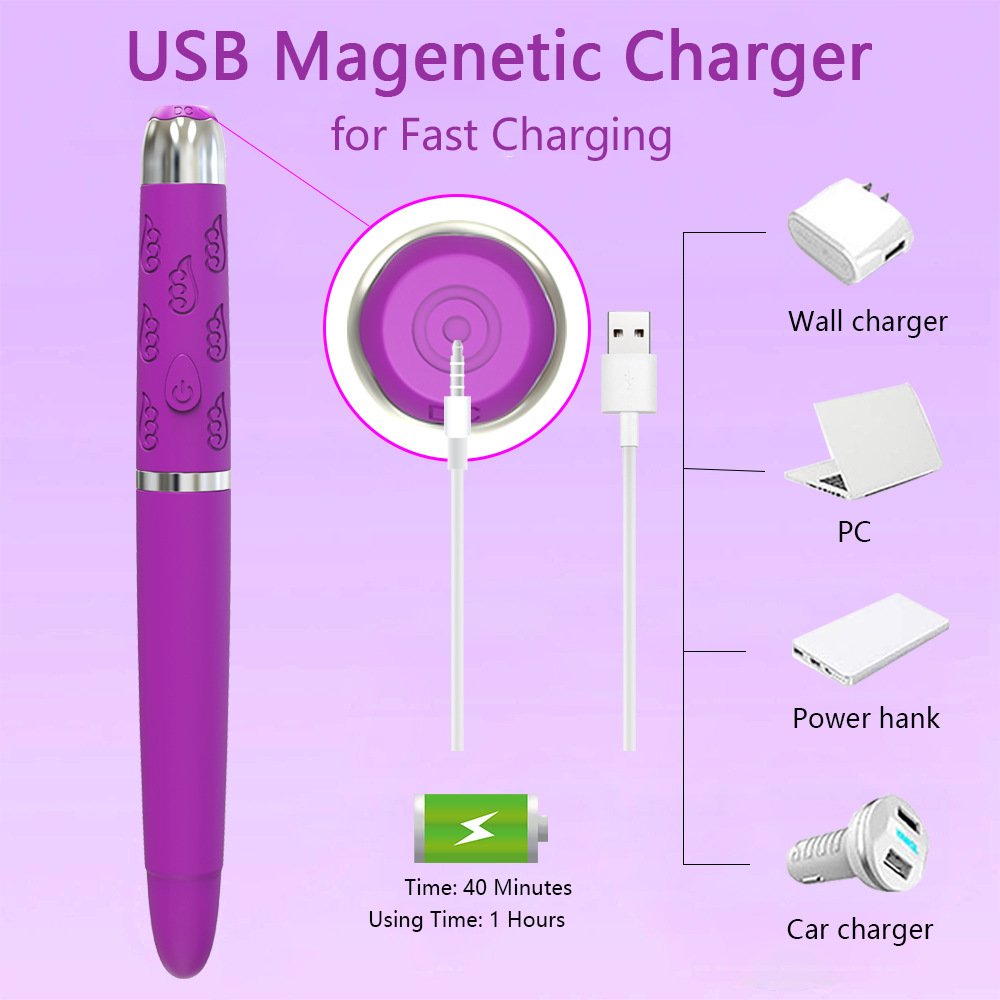 【EASY TO CARRY】:Mimic the appearance of the pen design to avoid the embarrassment of carrying exposure, the vibrator is equipped with a USB charging cable for easy charging, low noise, less than 60 decibels, enjoy the stimulation experience anytime, anywhere.