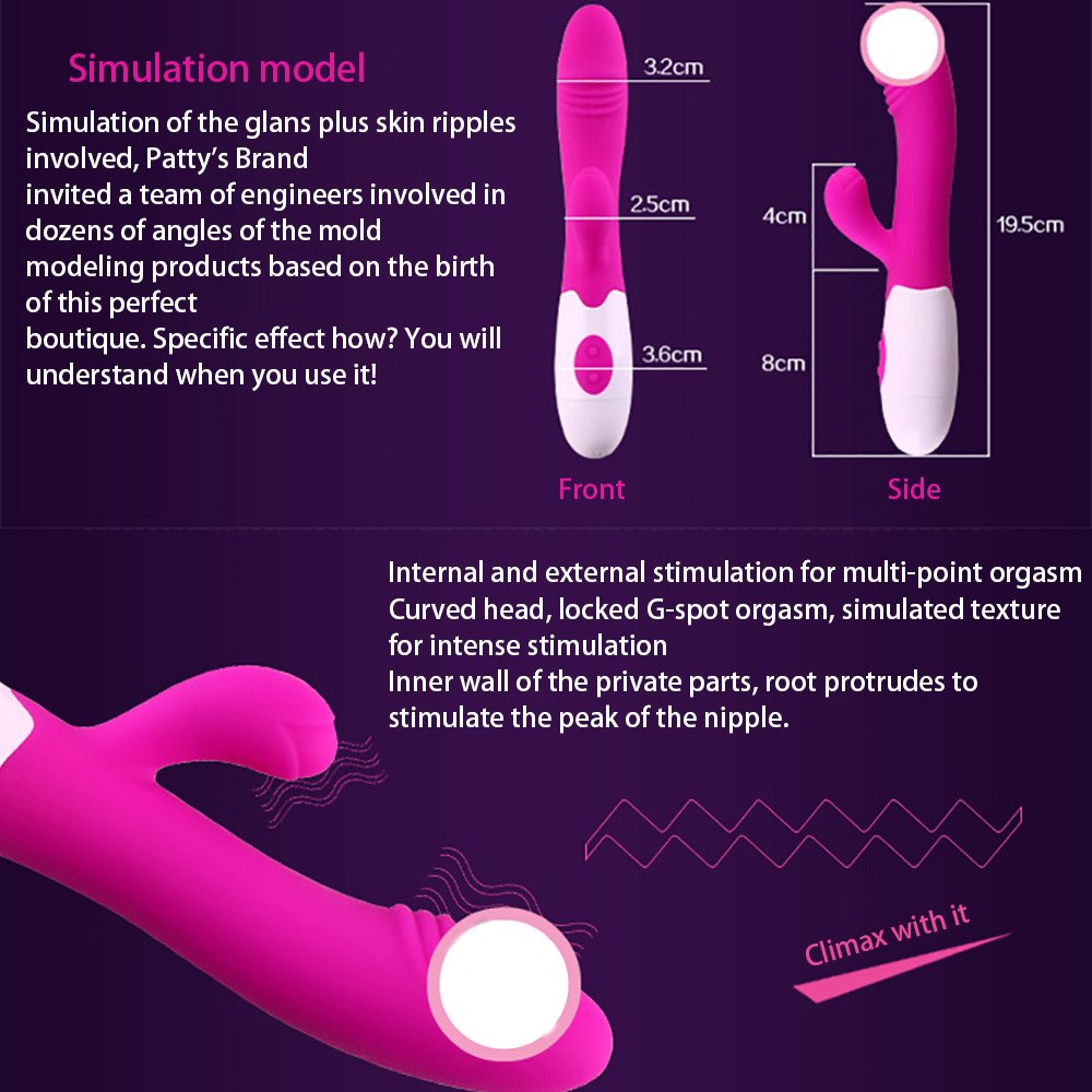 Realistic Rabbit Massager 30 Vibration Modes Dual-Headed Vibrator Personal Massager