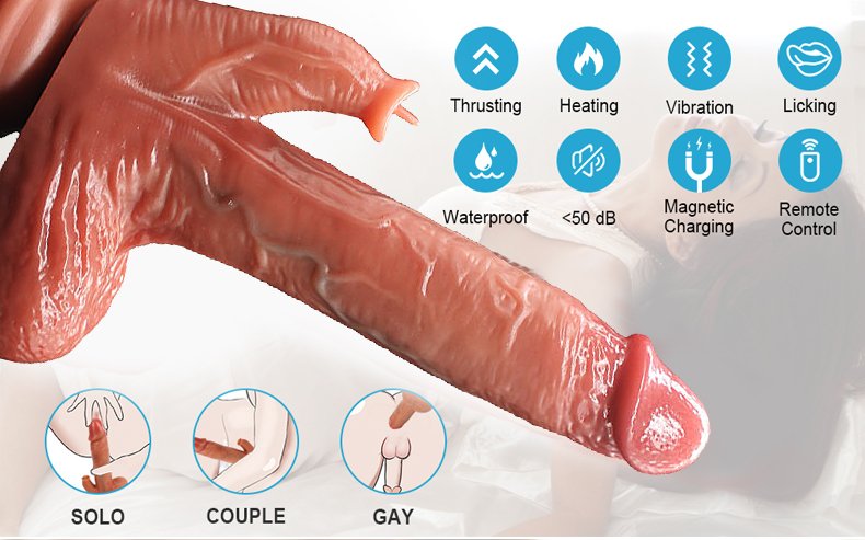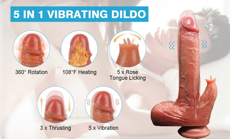 【 5 in 1 Thrusting Dildo 】 This thrusting dildo combines thrusting, vibrating, licking and heating 4 type stimulation. It can be stimulate your clitoris or anal while masturbating in the vagina or backyard, give you a more intense, richer experience. In addition, this dildo is equipped with an upgraded powerful thrust motor that violently hits your flower core, leads you to the peak of pleasure!