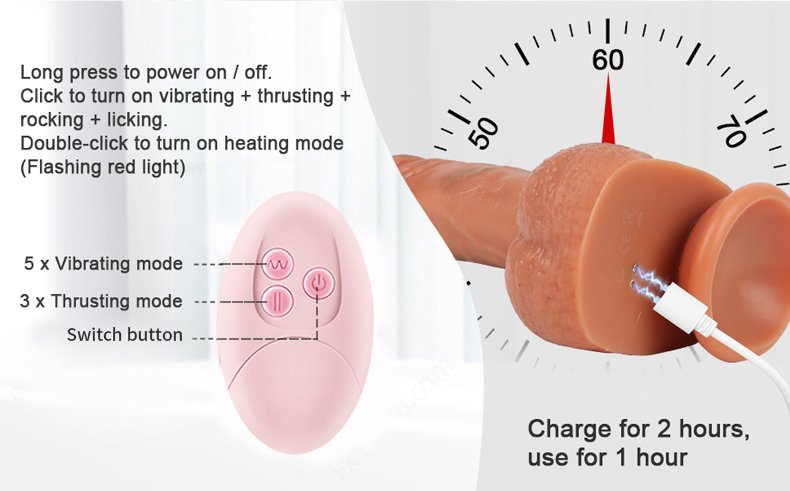 【 More Fun 】 This dildo have thrusting , and the licking part changed to a softer and more precise pointed tongue, meets your needs at each stage by changed the speed and frequency. At the same time, this dildos comes with a remote control which range beyond 26FT ( 8m ), used to change vibration, thrust modes and heating, this gives you more options for space and occasion, spice up your solo or couples game.
